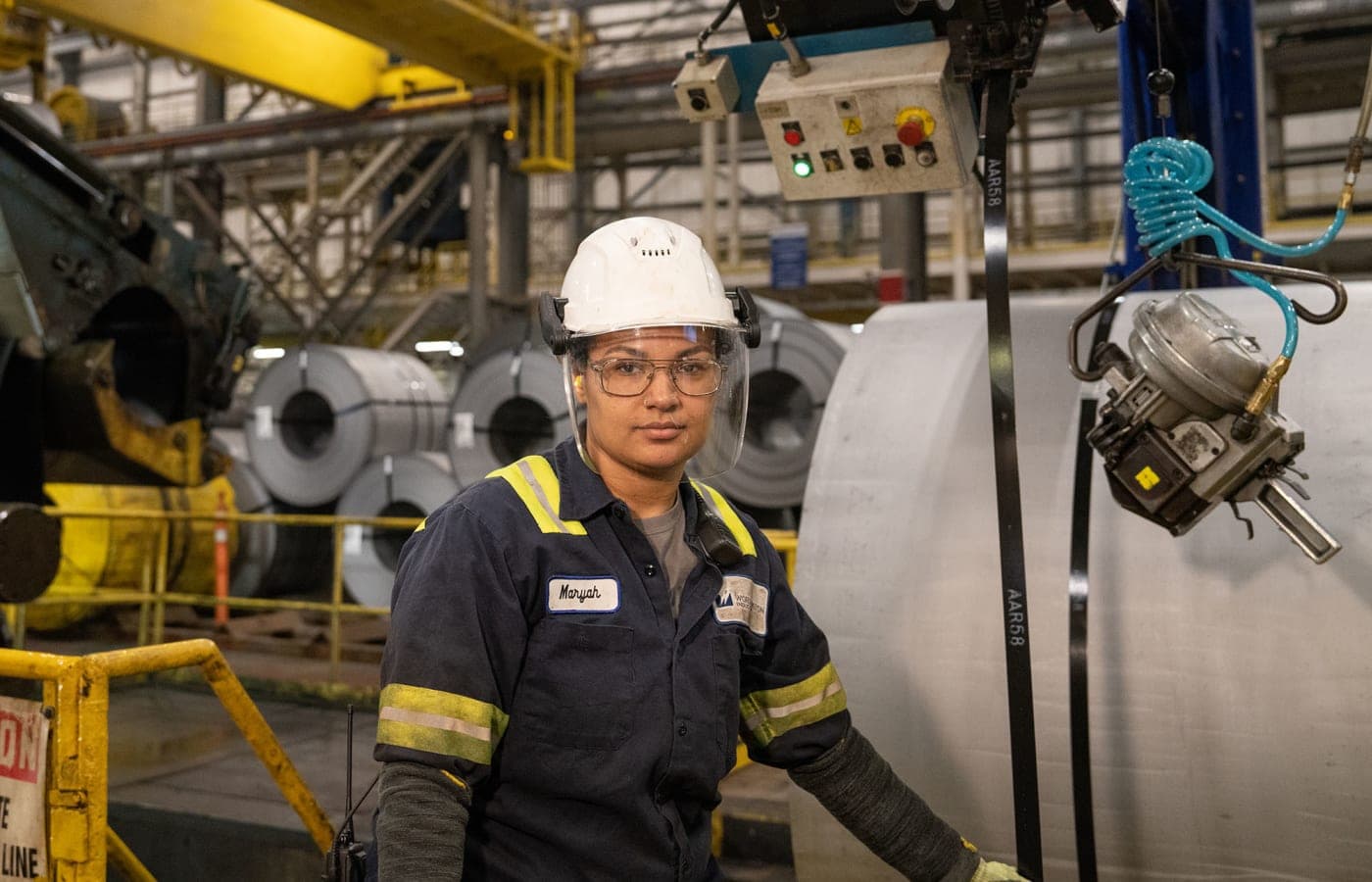 "My family has been with this company for 25 years. Between my uncle, my dad, and my brother, I'm the fourth Mack to be here and the first female crane operator in the WIP (work in process) department. I bring the steel in, ship out the finished product, and keep the lines moving and producing."