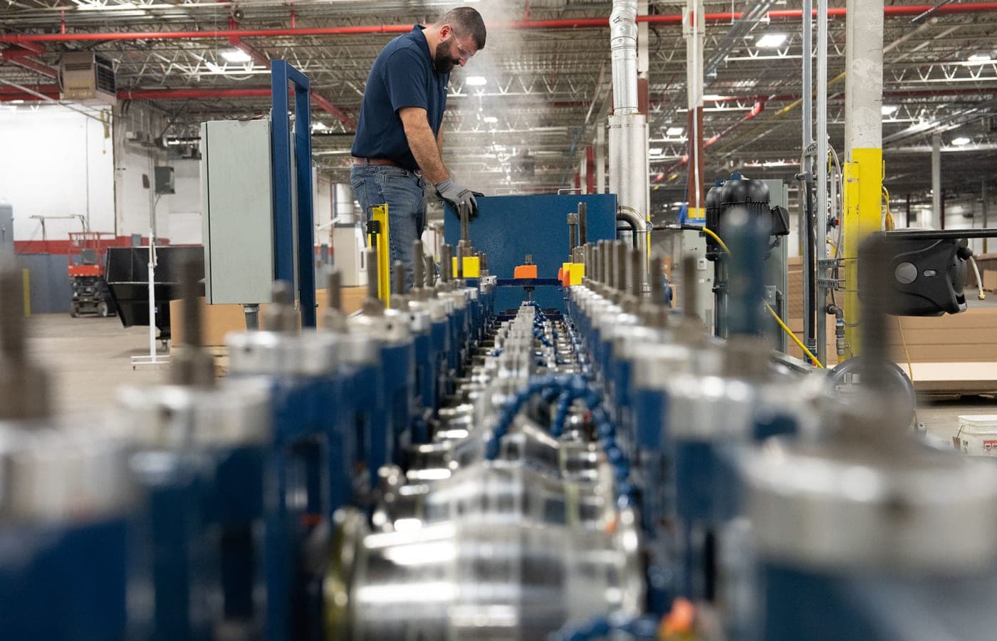 At a new Bowling Green, Ohio, facility, purpose-built to supply First Solar, the Ice Industries team transforms freshly galvanized sheets of steel into Series 7 back rails. The facility is set to employ 120 workers once it reaches full production.